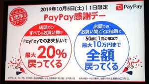 PayPayがサービス開始1周年を記念したキャンペーン「PayPay感謝デー」を10月5日の1日限定で実施します!